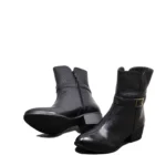 نیم بوت زنانه ساق دار تمام چرم گاوی مدل f3 کد 253-مشکی