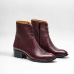 نیم بوت زنانه ساق دار تمام چرم گاوی مدل f3 کد 253-زرشکی