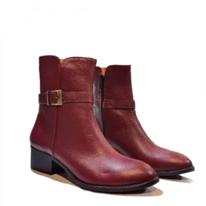 نیم بوت ساق دار تمام چرم طبیعی کد 171- زرشکی
