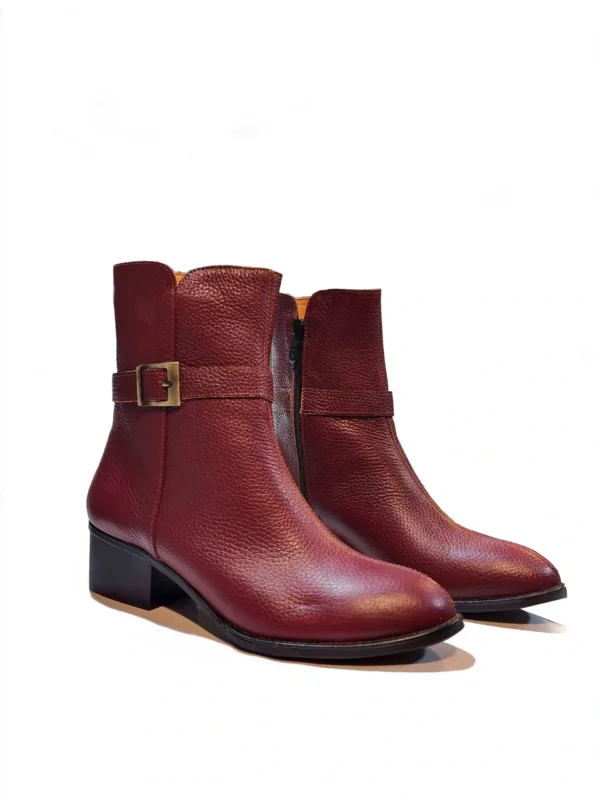 نیم بوت ساق دار تمام چرم طبیعی کد 171- زرشکی
