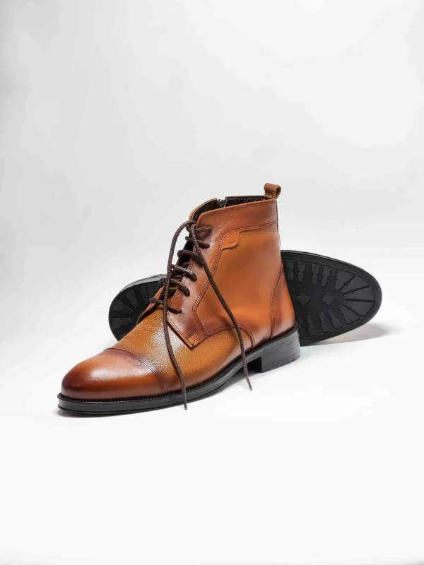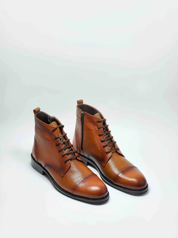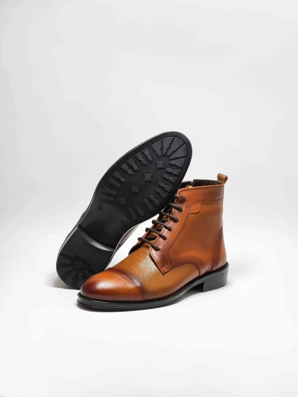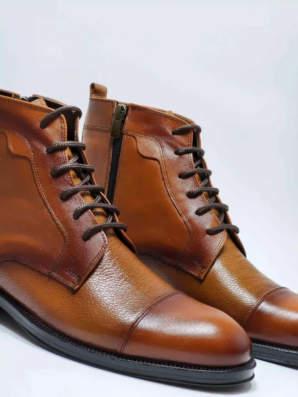 نیم بوت مردانه تمام چرم بند دار مدل tip1 کد128-عسلی