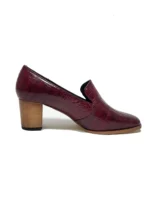 کفش زنانه پاشنه چوبی تمام چرم مدل دیبا کد102-زرشکی