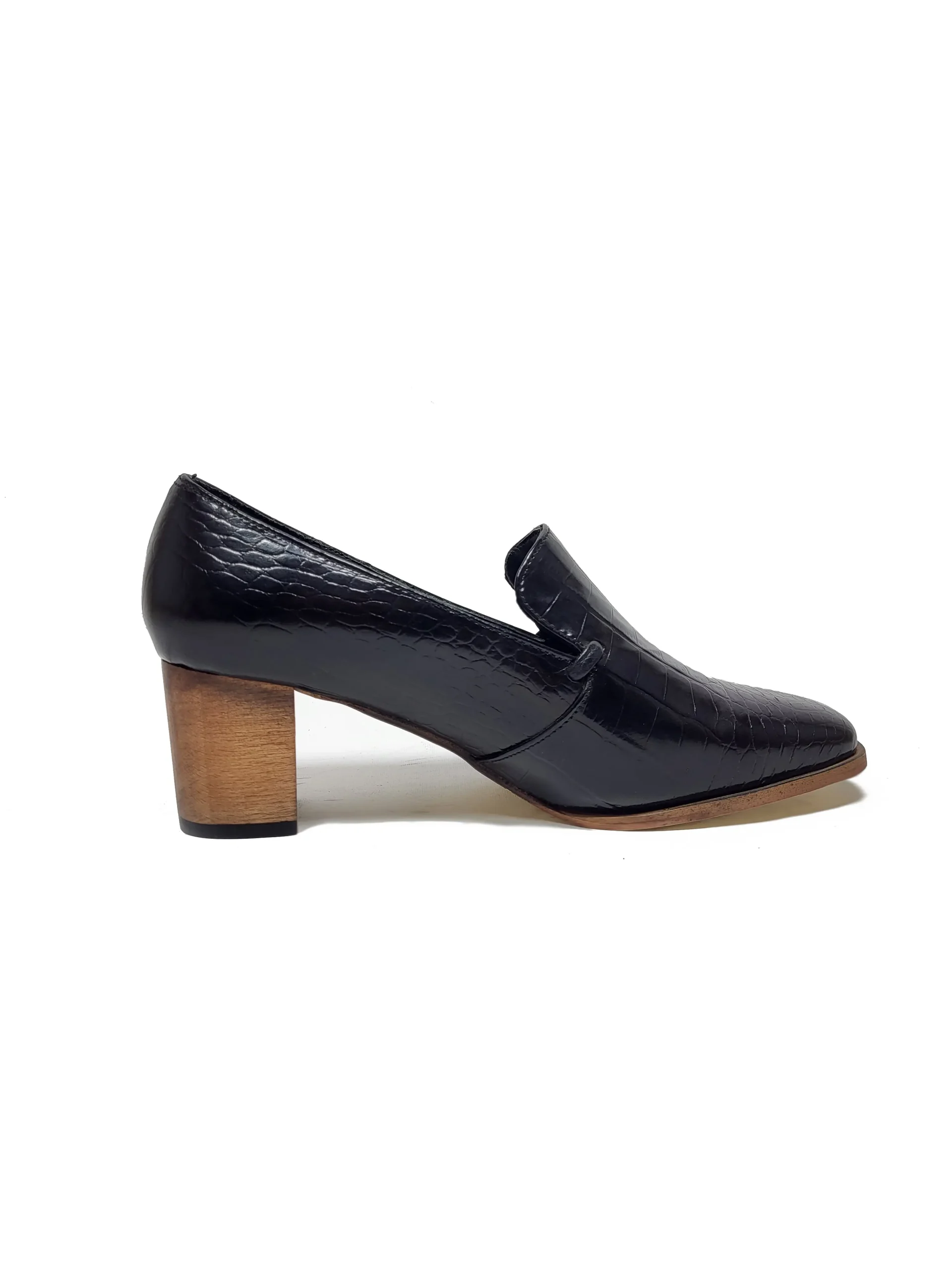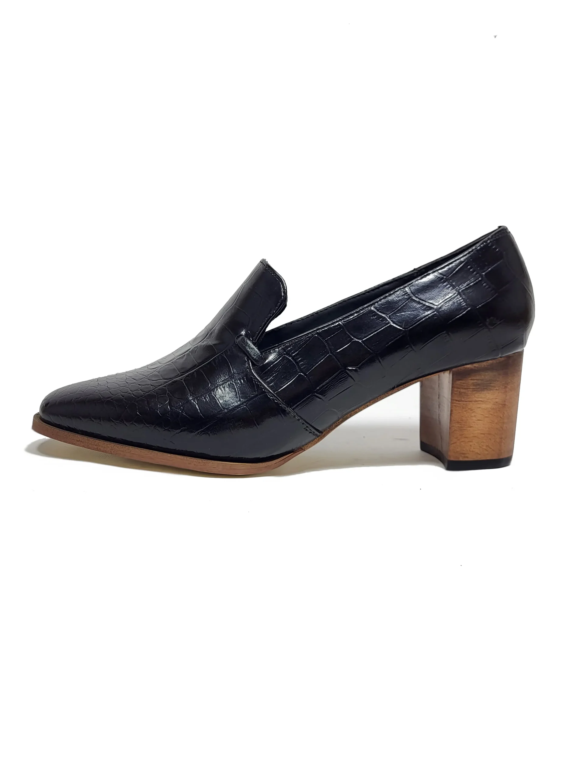کفش پاشنه دار تمام چرم مدل خورشید کد B_103-مشکی