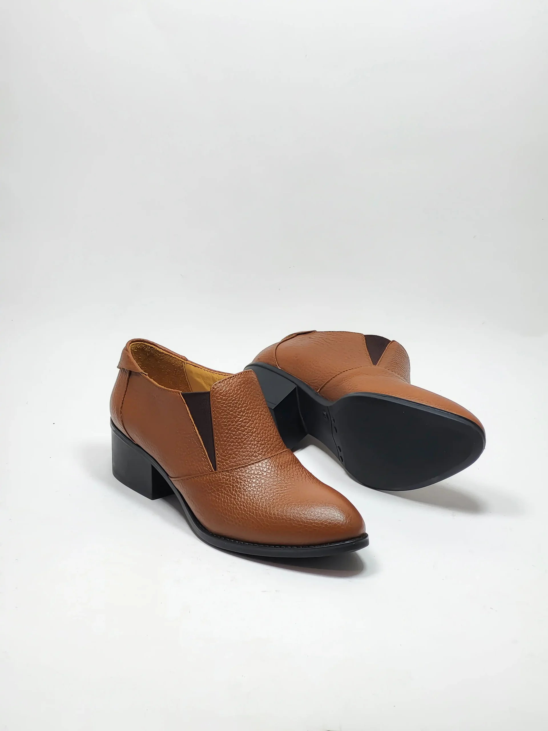کفش پاشنه دار زنانه تمام چرم مدل FT2کد121-عسلی