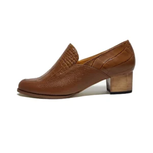 کفش زنانه پاشنه چوبی تمام چرم مدل دیبا کد102-عسلی